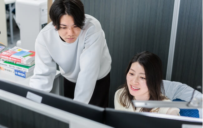 経験の有無や勤続年数を問わず、やる気のある方には挑戦・活躍の機会が積極的に与えられる会社だと思いますので、「仕事で上を目指したい」「会社を引っ張っていきたい」という気持ちがある方には良い職場だと思いますね!