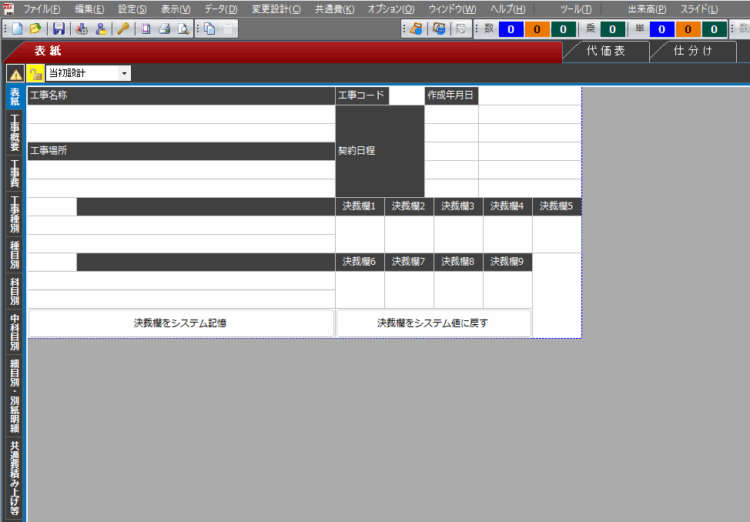 この際、左のタブ「工事費」「工事種別」などを切り替えて入力します。