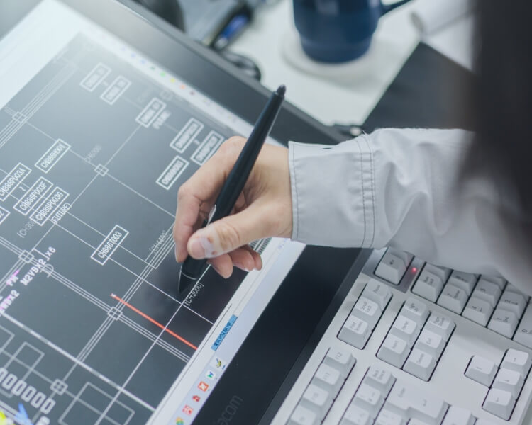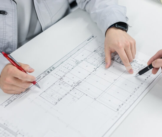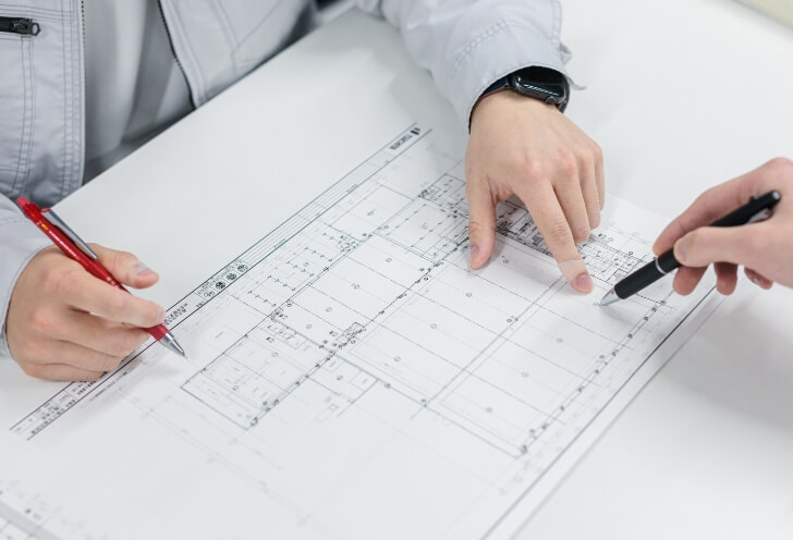 建築設備技術者の業務は、設備設計と積算の2つに大別することができます。設計は主に照明、コンセント、通信機器などレイアウトや、電気容量の計算、配線ルートの計画を行う仕事で、積算は電気設備工事に必要な資材の数量と費用を計算する仕事です。丁寧に指導するため文系の方でも問題ありませんが、数字や図面に触れてきた理系の方は存分に力を発揮できると思います。